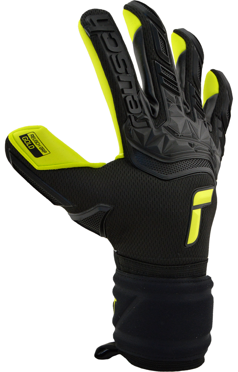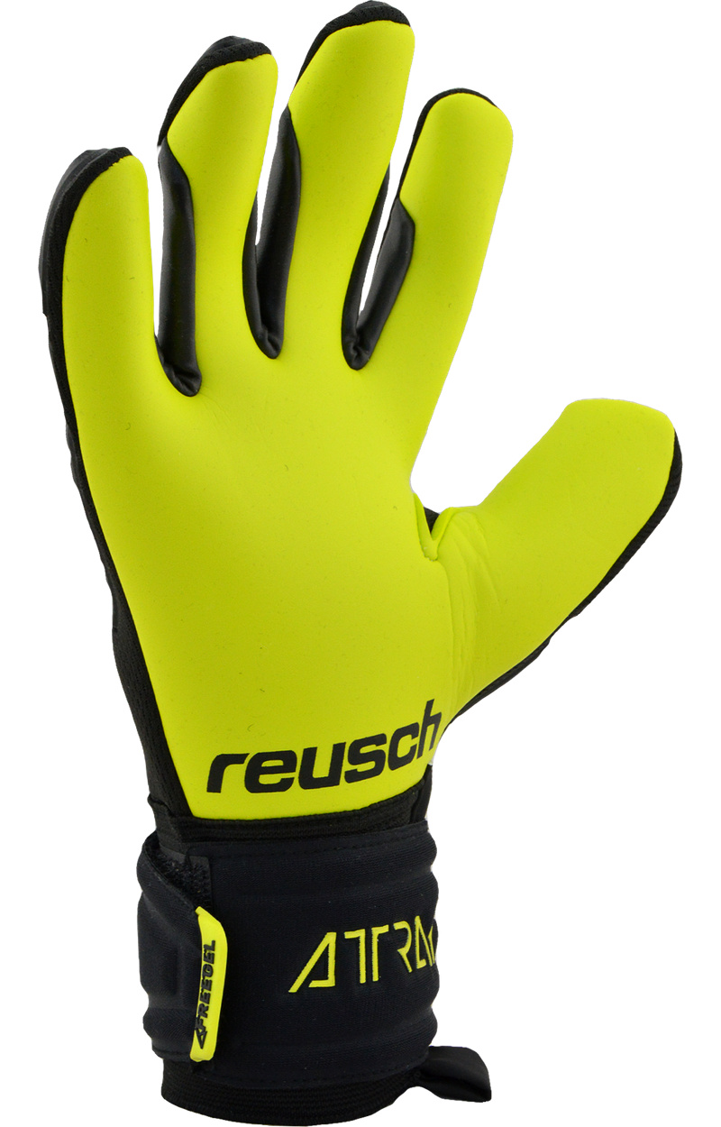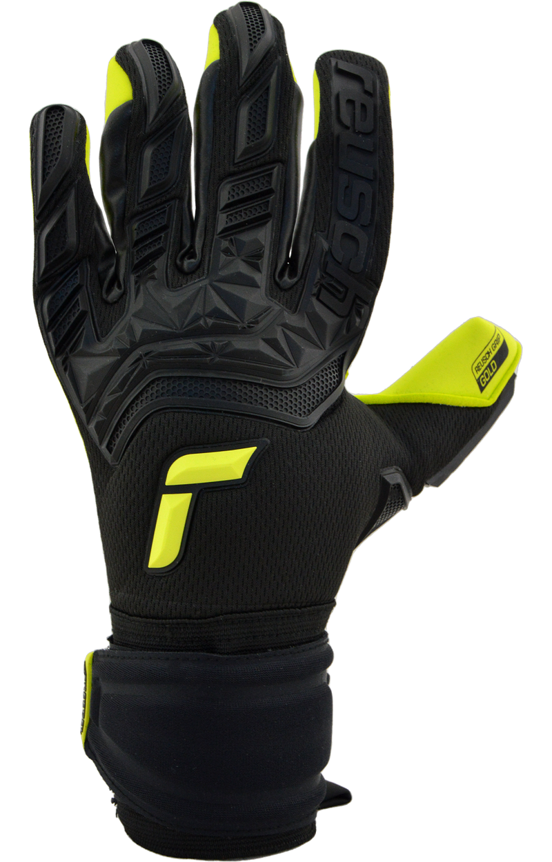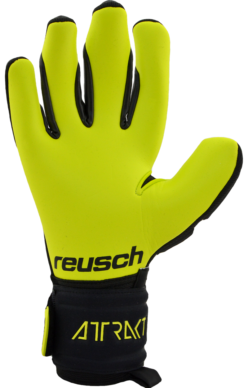 Attrakt Freegel Gold fabriqué dans un coloris spécial Goalkeeper Day noir et jaune. Il est conçu avec le tout nouveau latex Reusch Grip Gold de qualité allemande comprenant le pourcentage le plus élevé de latex naturel afin d'améliorer les propriétés d'adhérence globales pour des performances de gardien de but sans compromis. L'application de silicone Freegel sur le revers rend le gant très flexible sans nuire à la stabilité nécessaire.