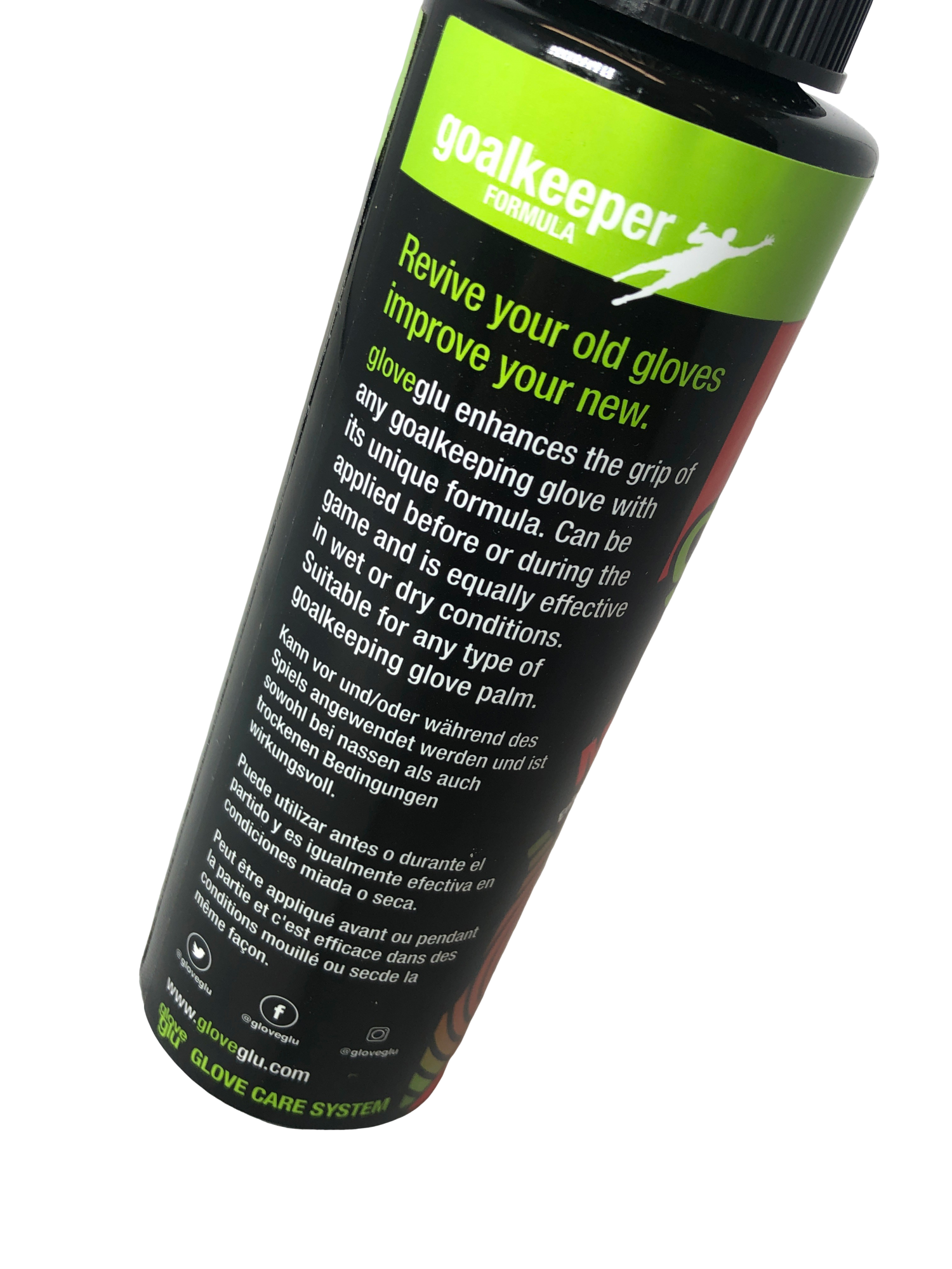 Développé en tenant compte des besoins des gardiens de but, gloveglu MEGAgrip améliore l'adhérence de tout gant de gardien de but grâce à sa formule unique.