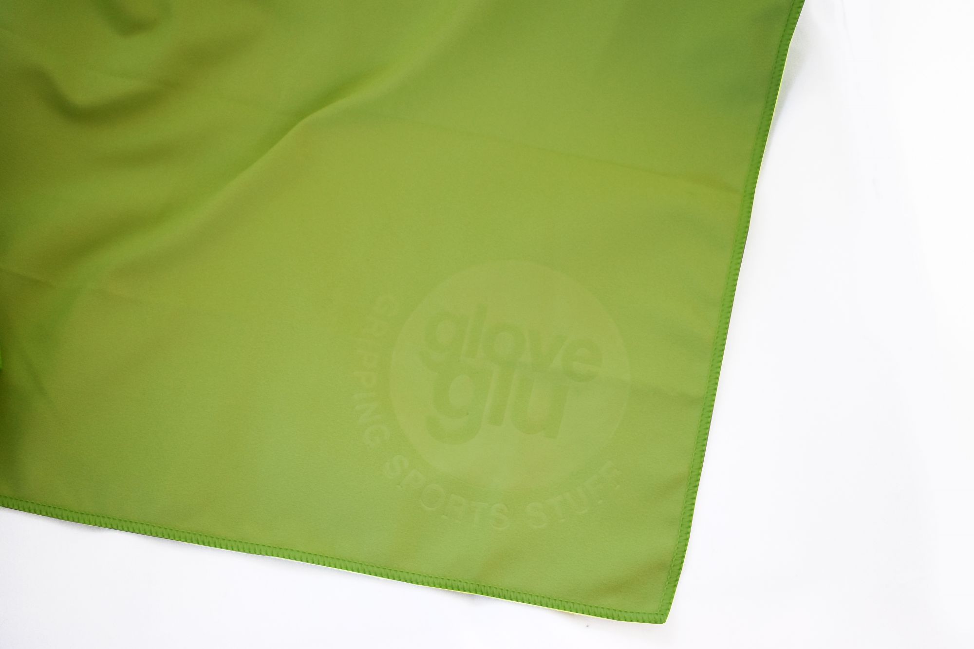 Serviette compacte vert fluo avec logo gloveglu en relief 'GRIPPING SPORTS STUFF'